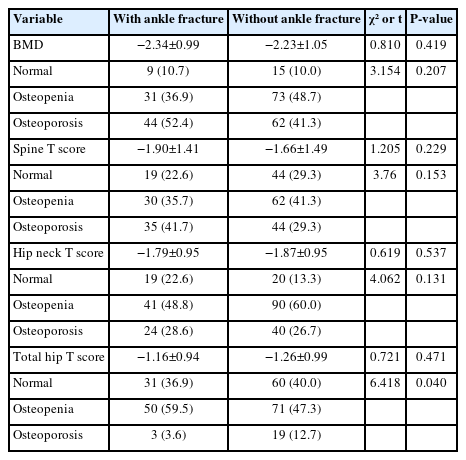 Table 4.Presence of ankle fractures according to participants’ BMD